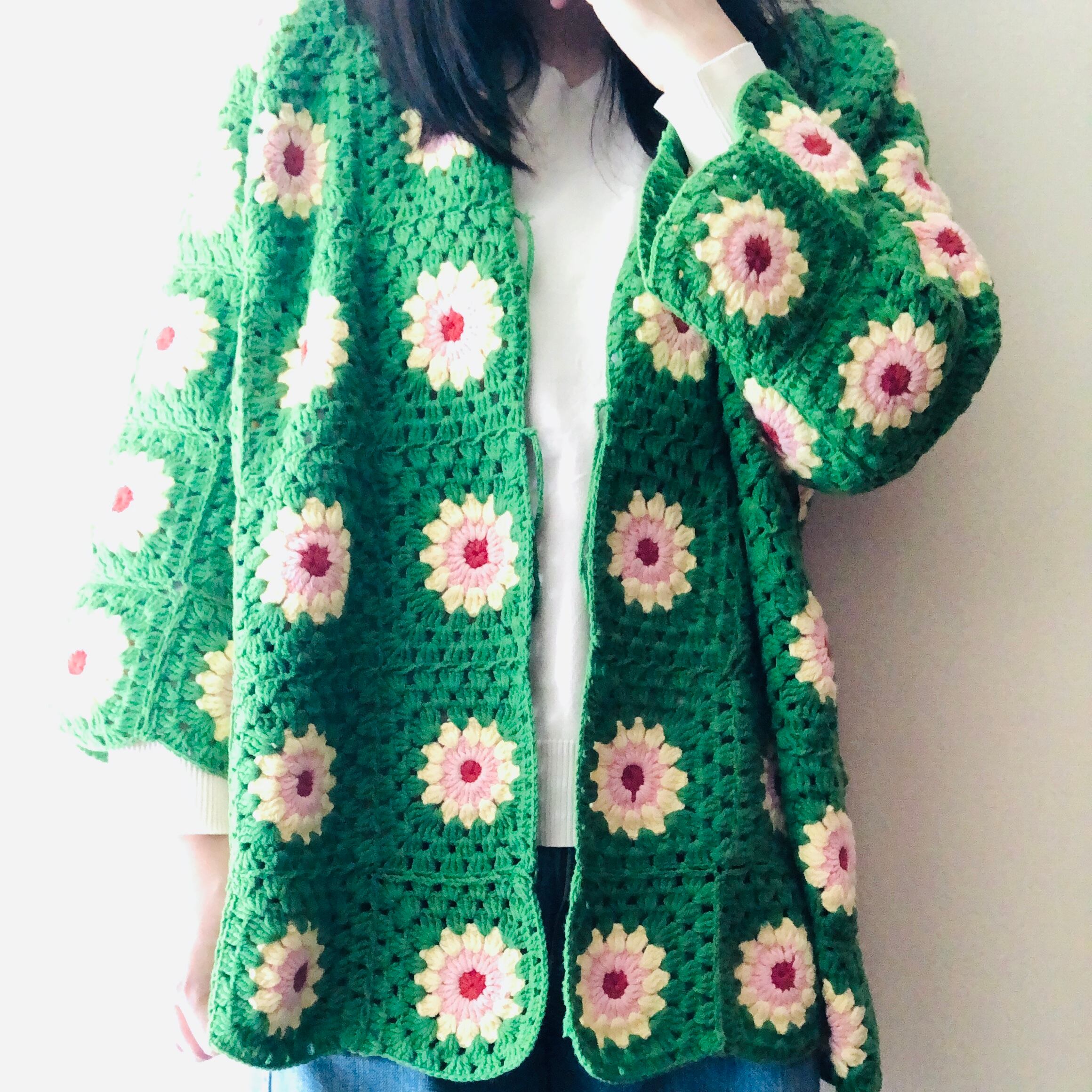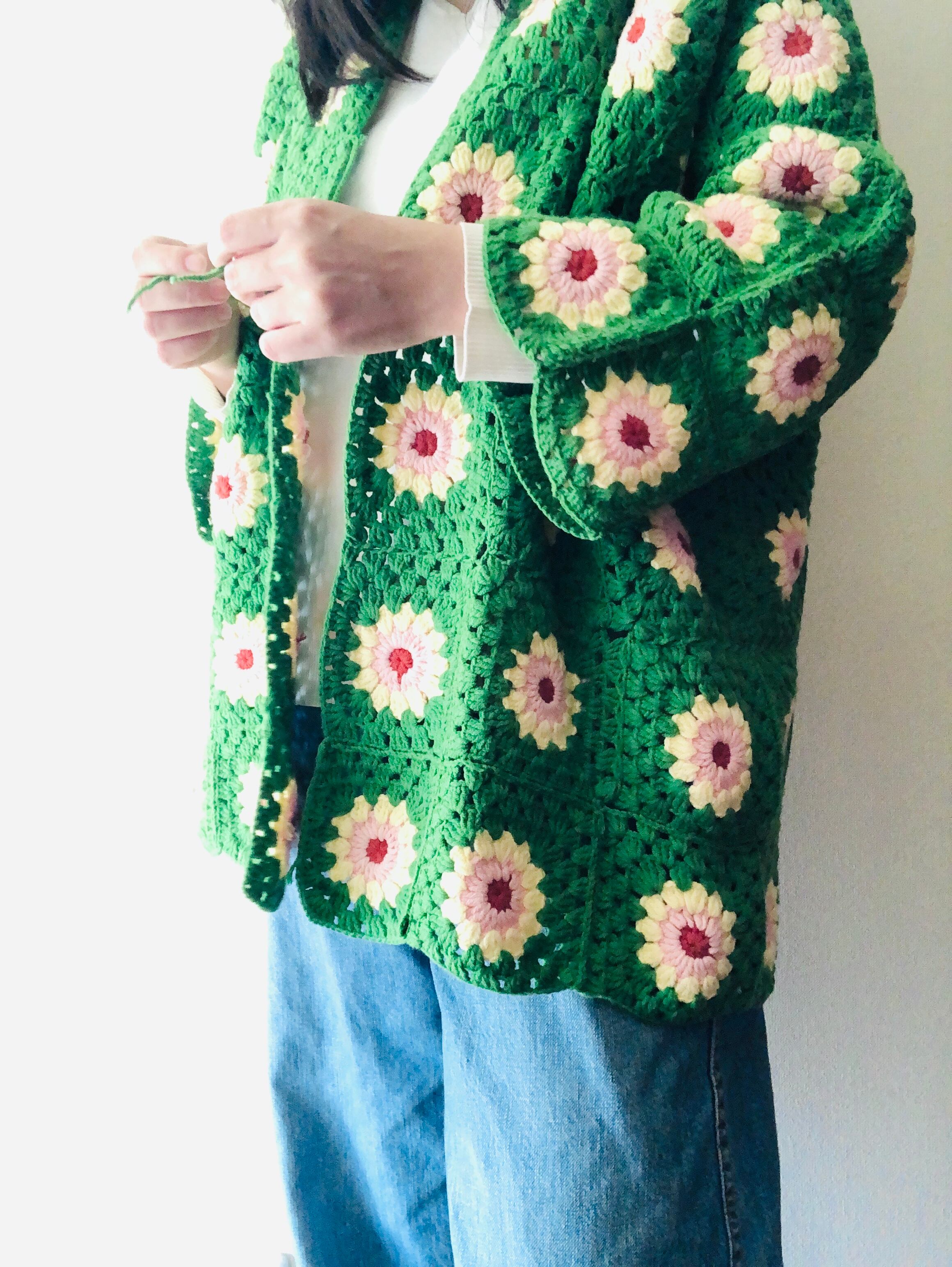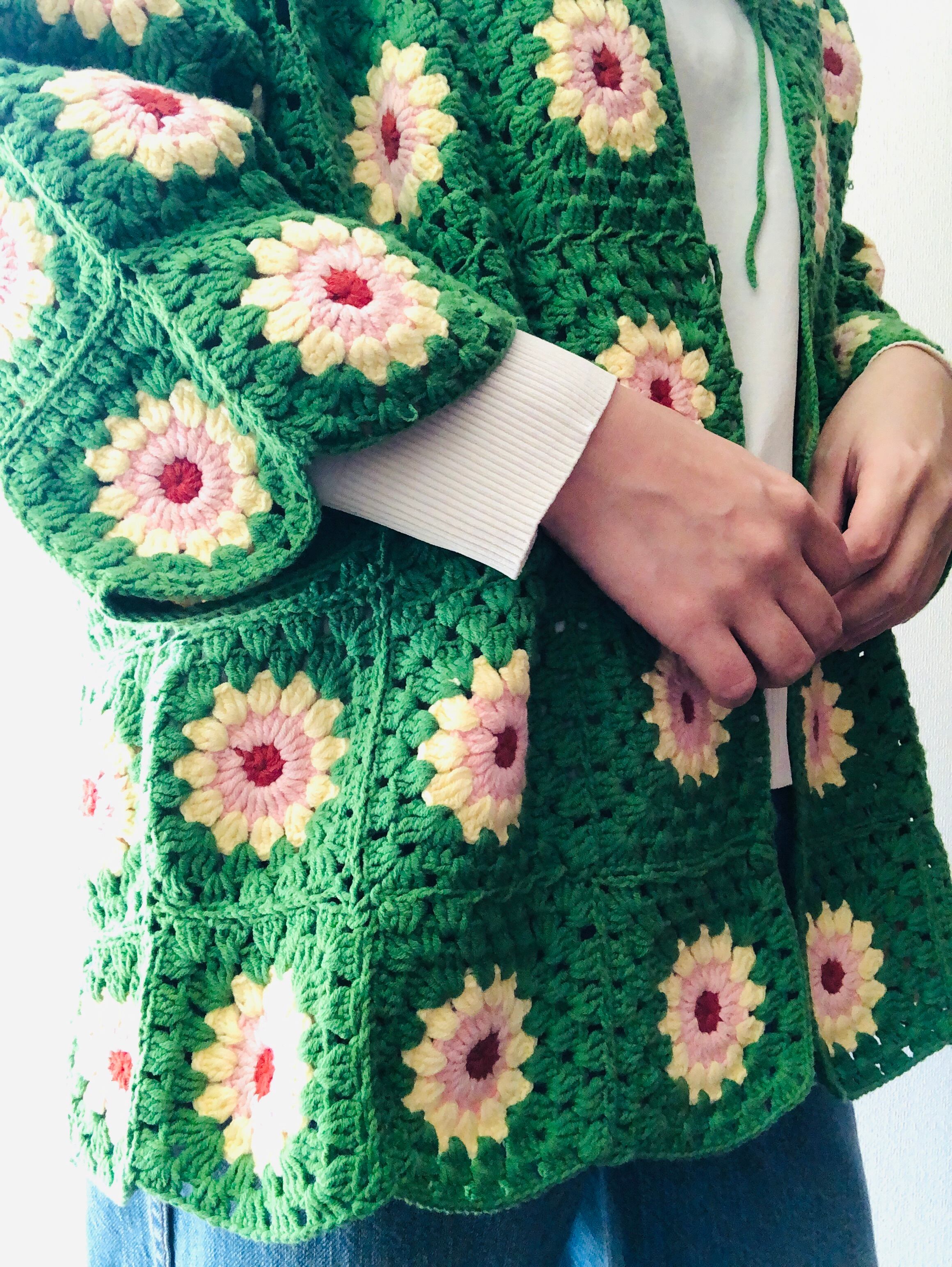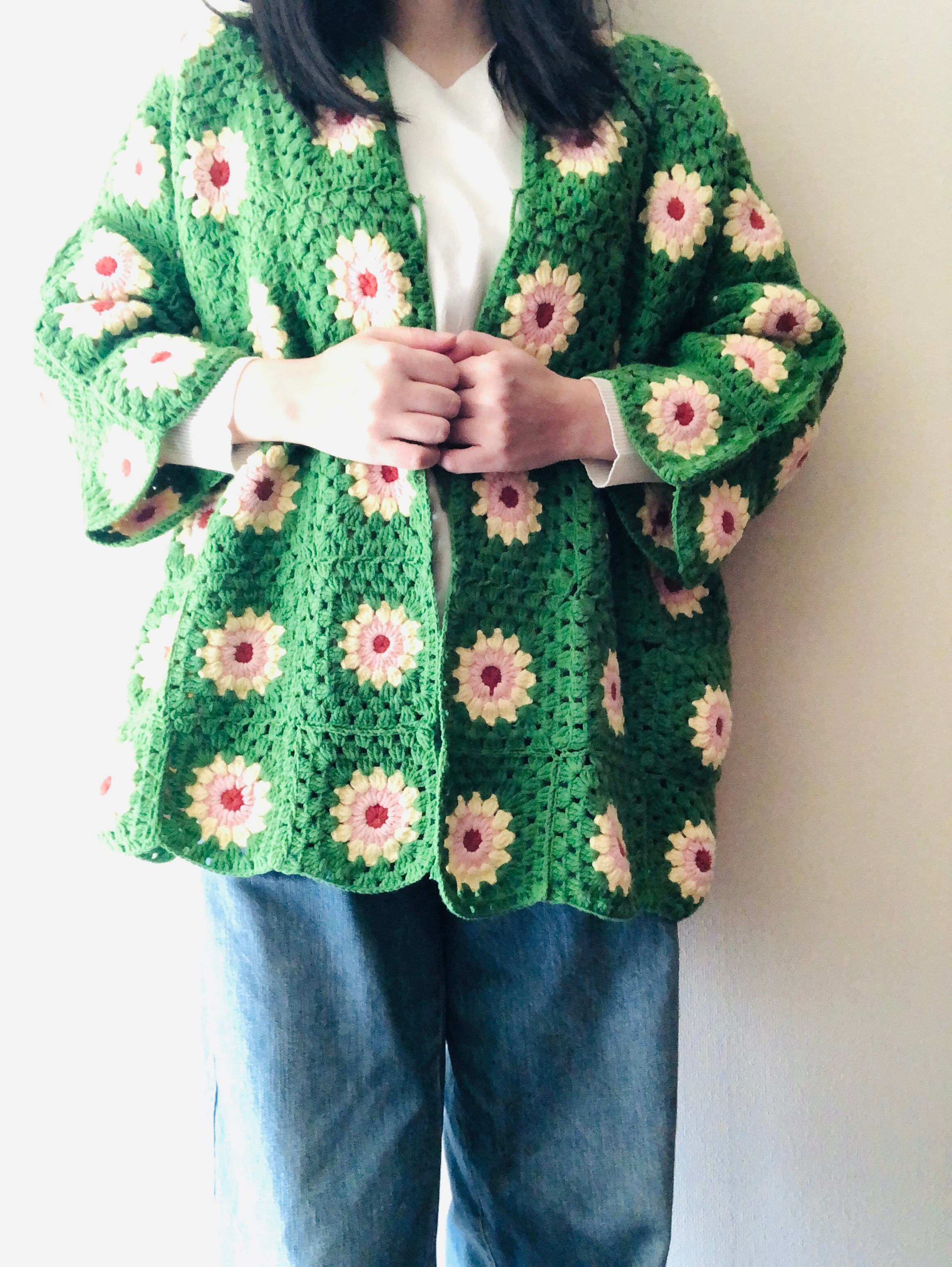 同じ配色のモチーフでデザインおり統一感があります。少しくすみの入っている緑色でヴィンテージ感のある配色となっております。