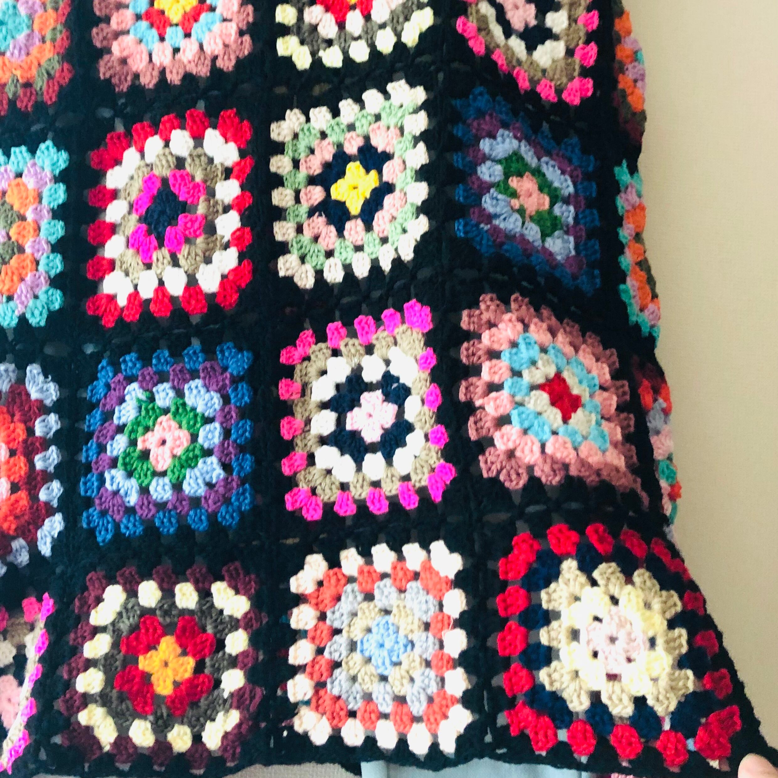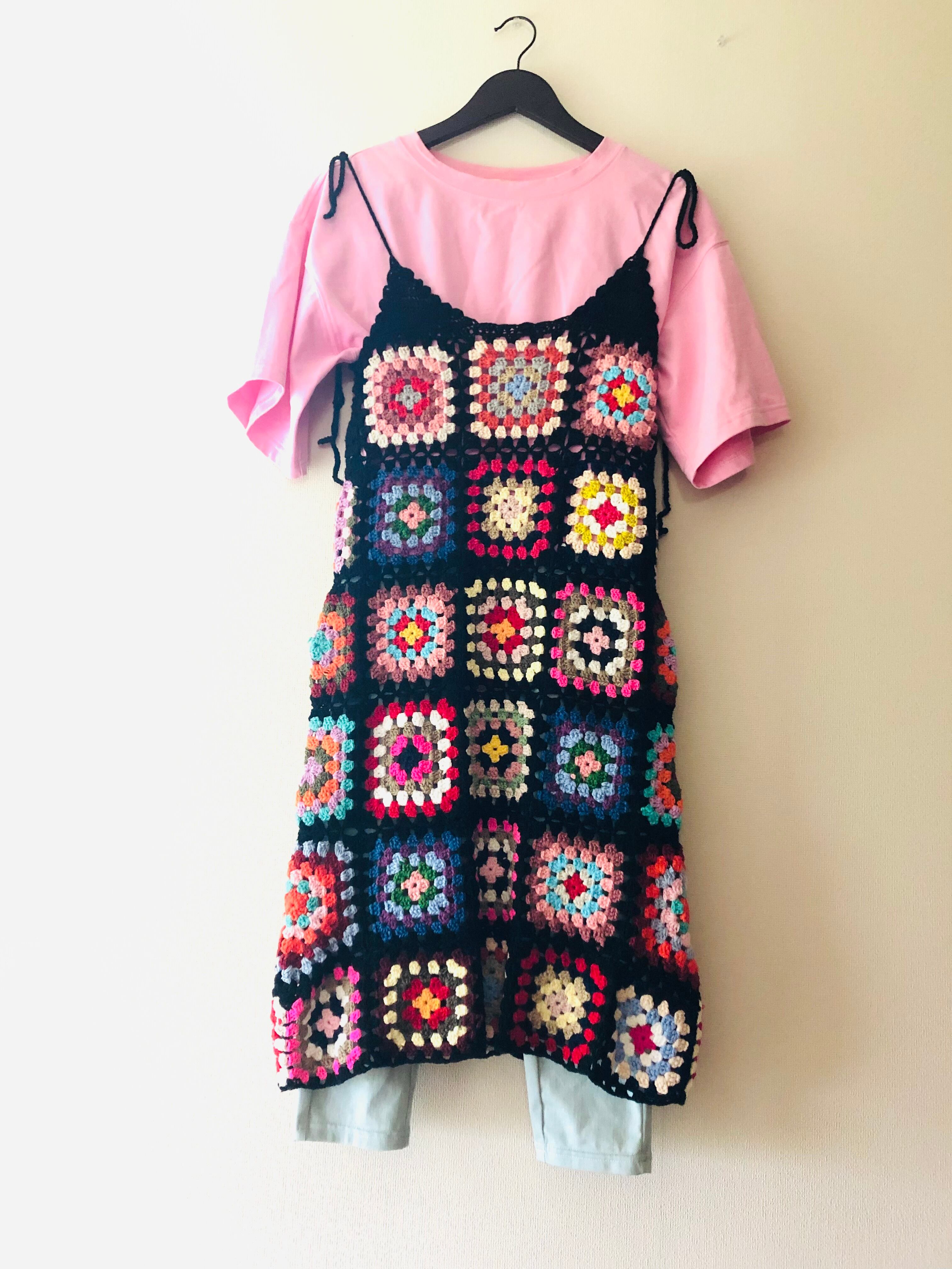 この一枚で、素敵な夏のコーディネートが完成します。前面と後面でグラニースクエアの色デザインが変わるので、とてもユニークでオシャレなアイテムです。