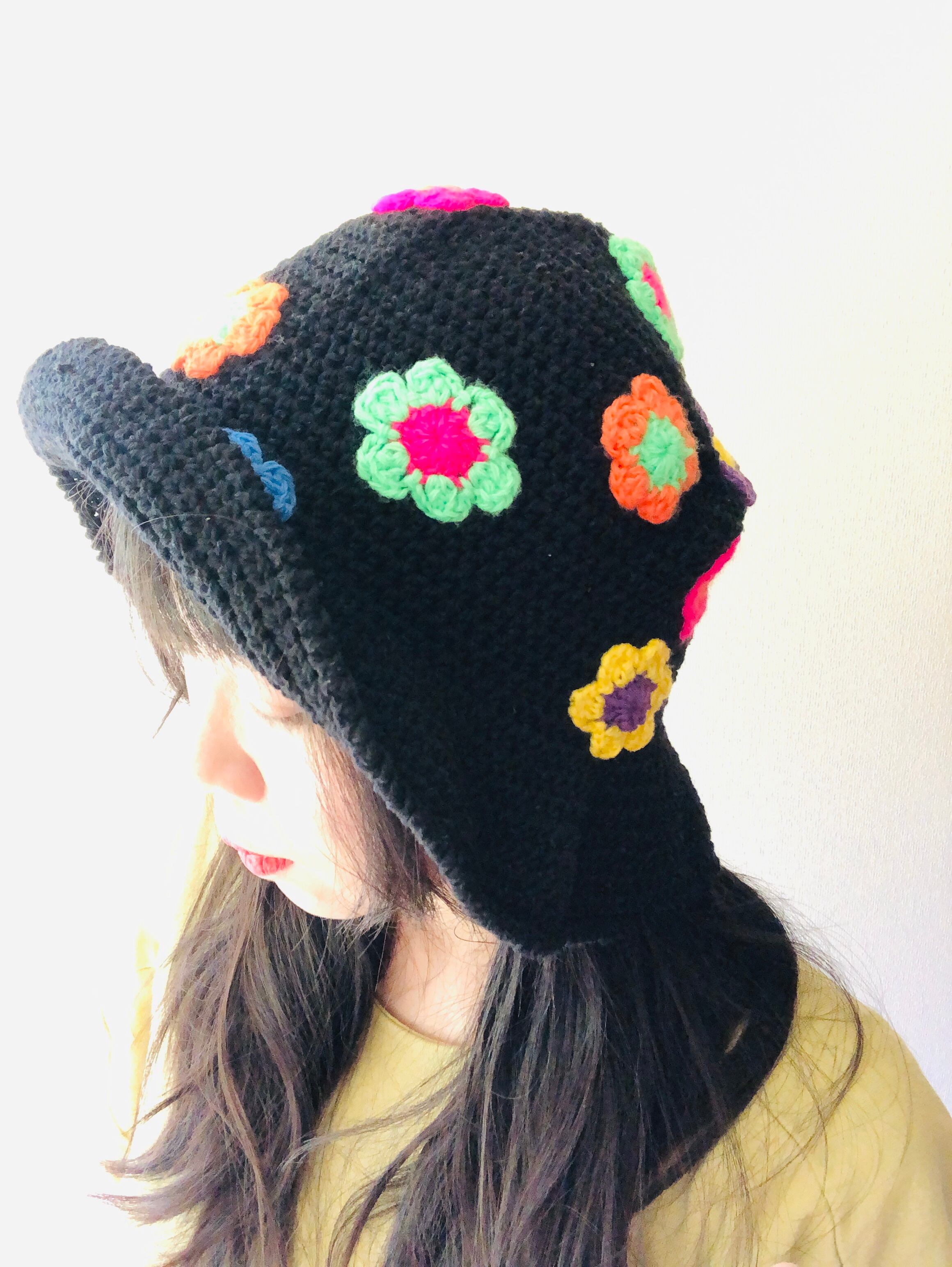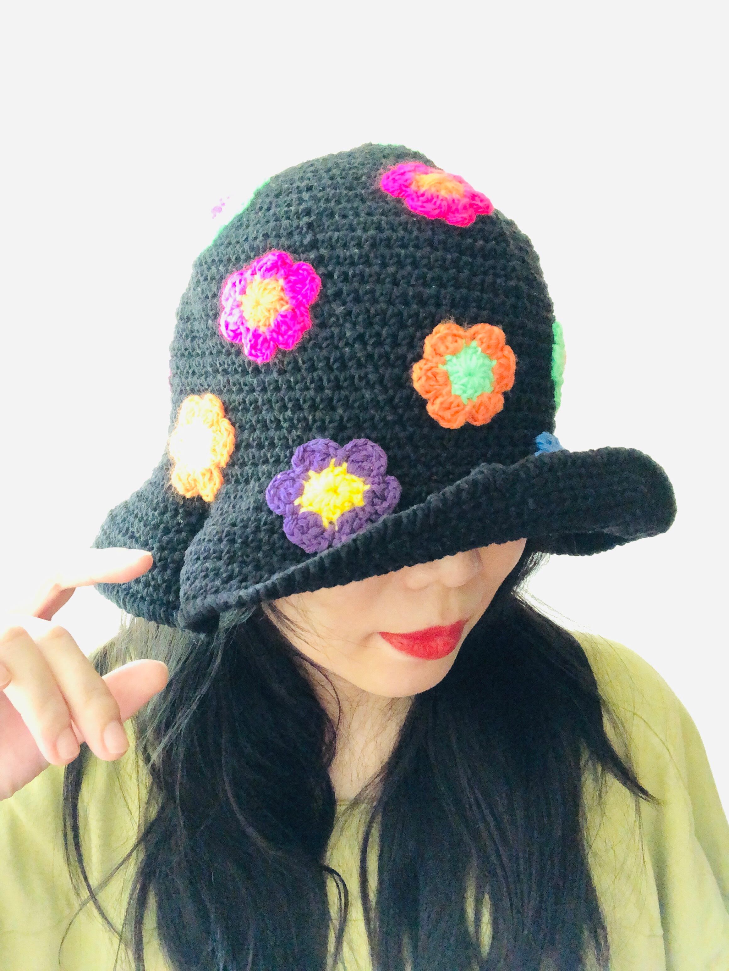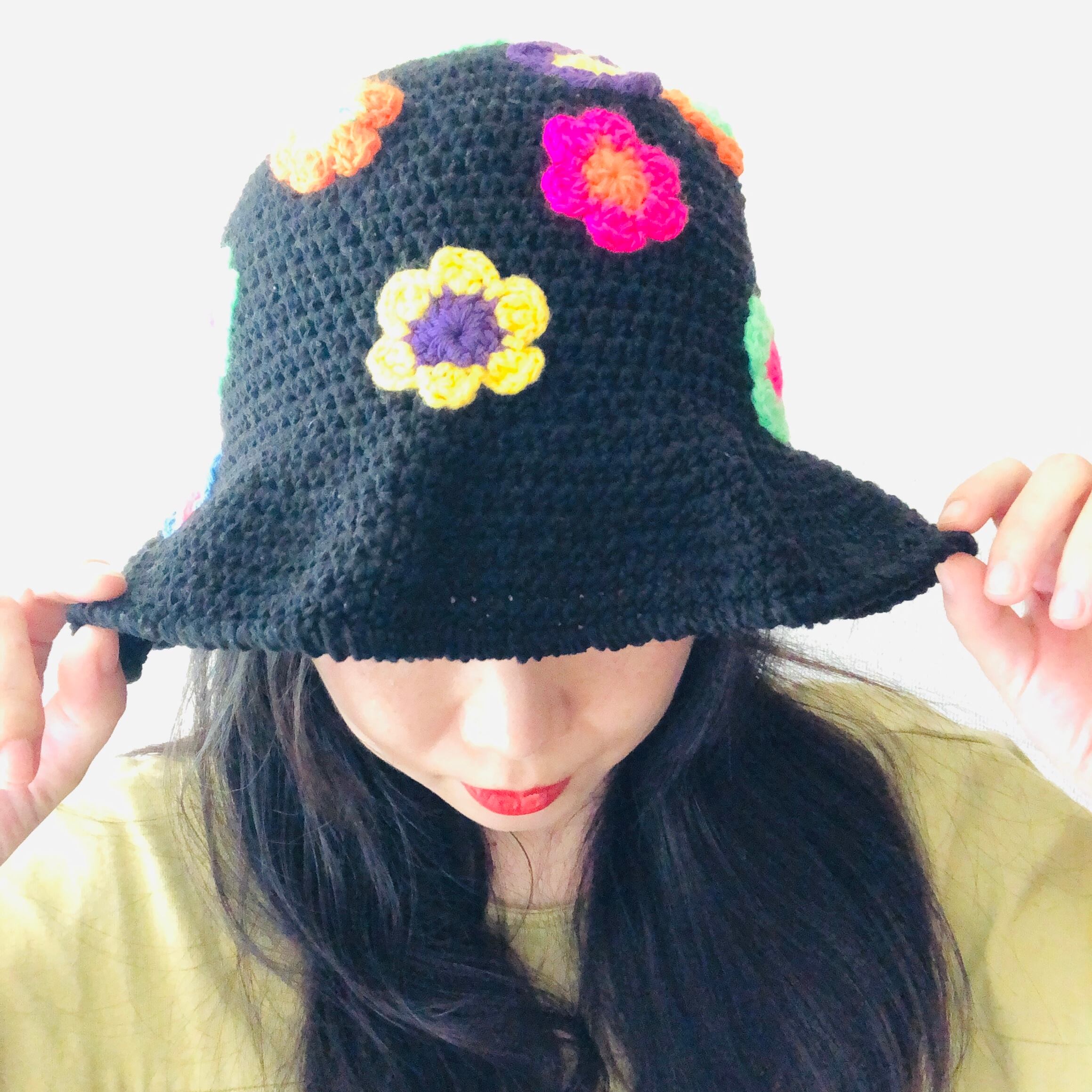 お花のグラニーハット【kuro】